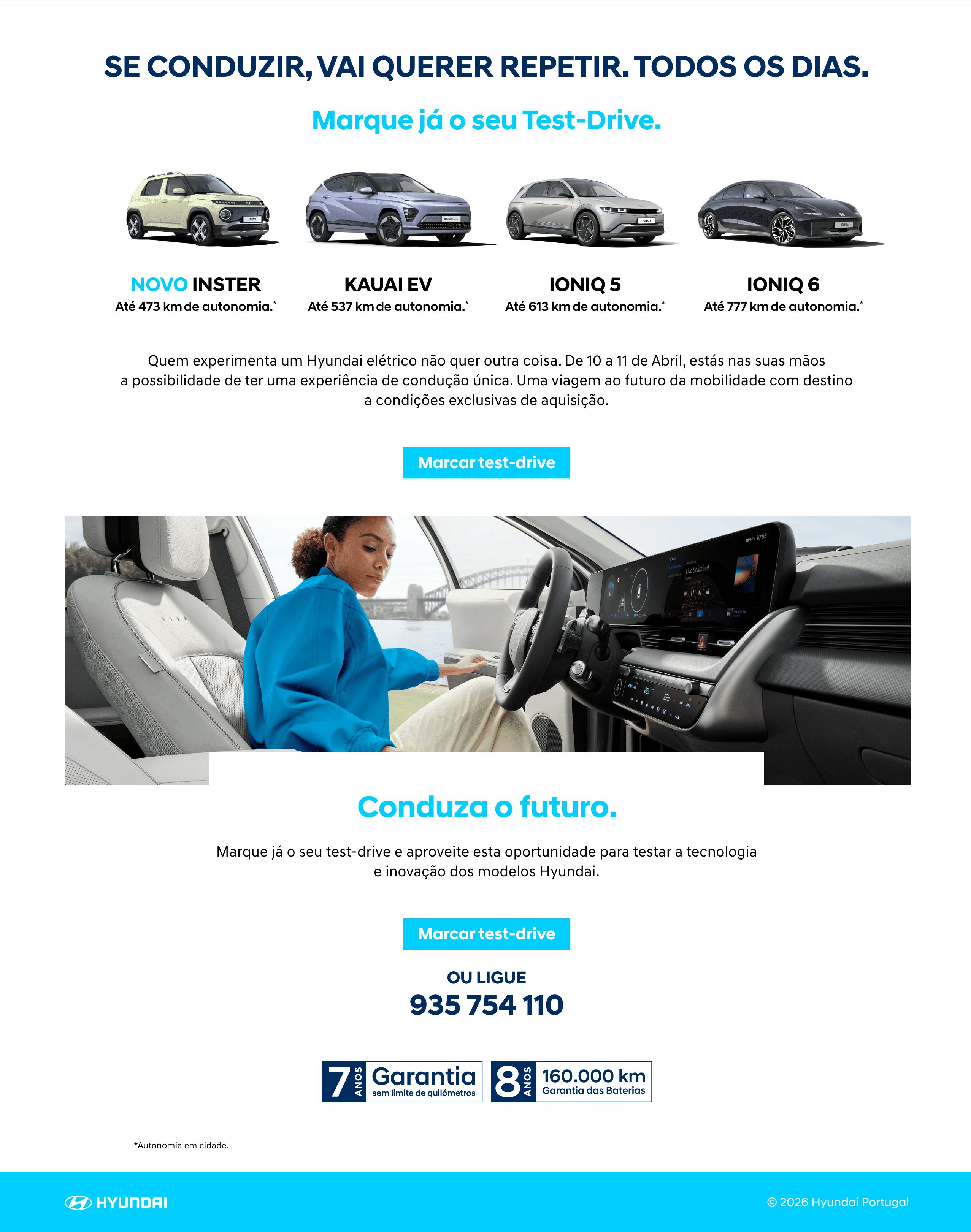 Gostaria de receber comunicações de marketing, nomeadamente promoções, eventos, novos produtos e serviços Hyundai Portugal, seja através de e-mail, telefone ou SMS e no veículo (se suportado), por forma a personalizar e a melhorar a minha experiência enquanto Cliente.